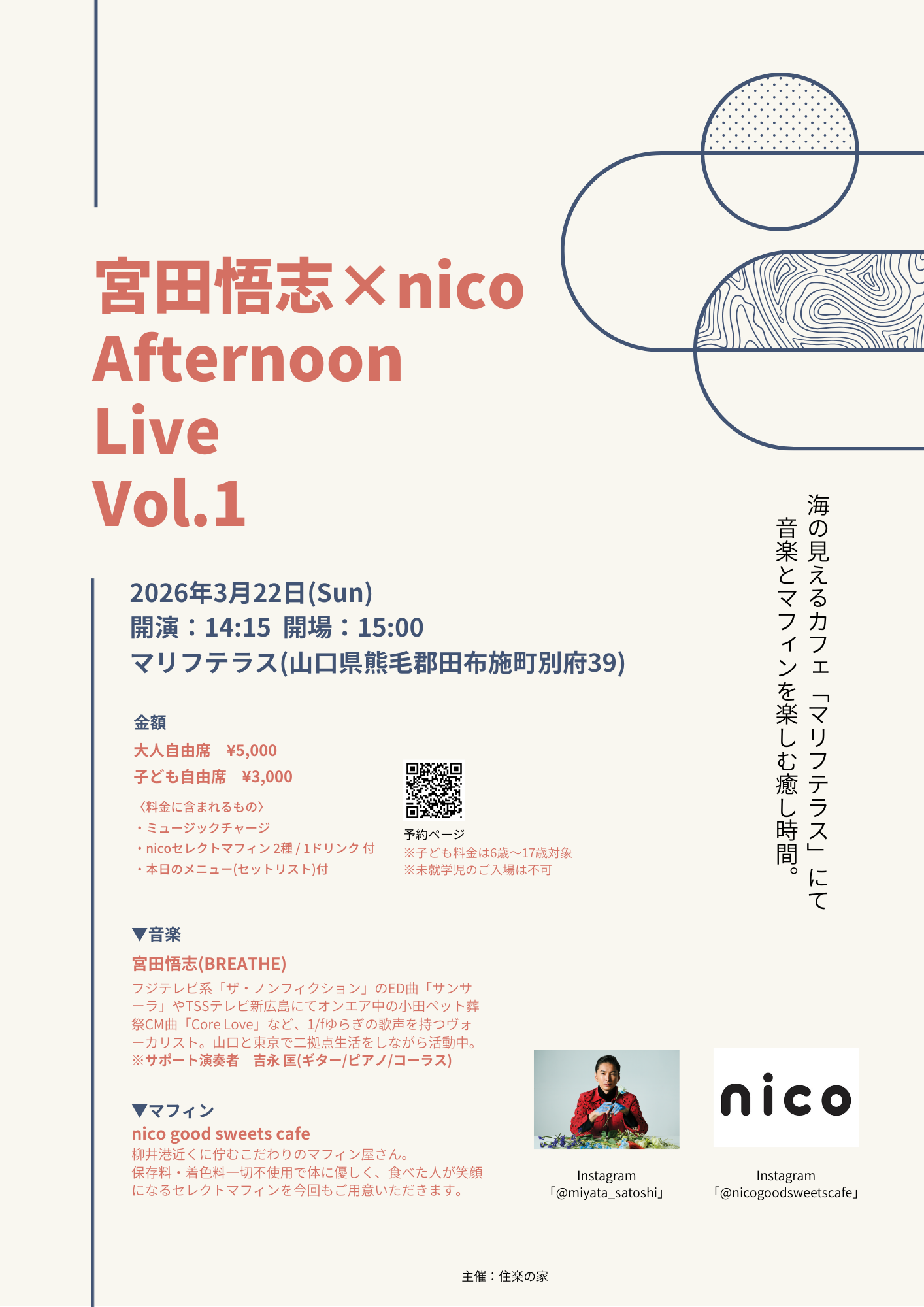 【2026年3月22日(日)】『宮田悟志 × nico Afternoon Live Vol.1』出演決定!